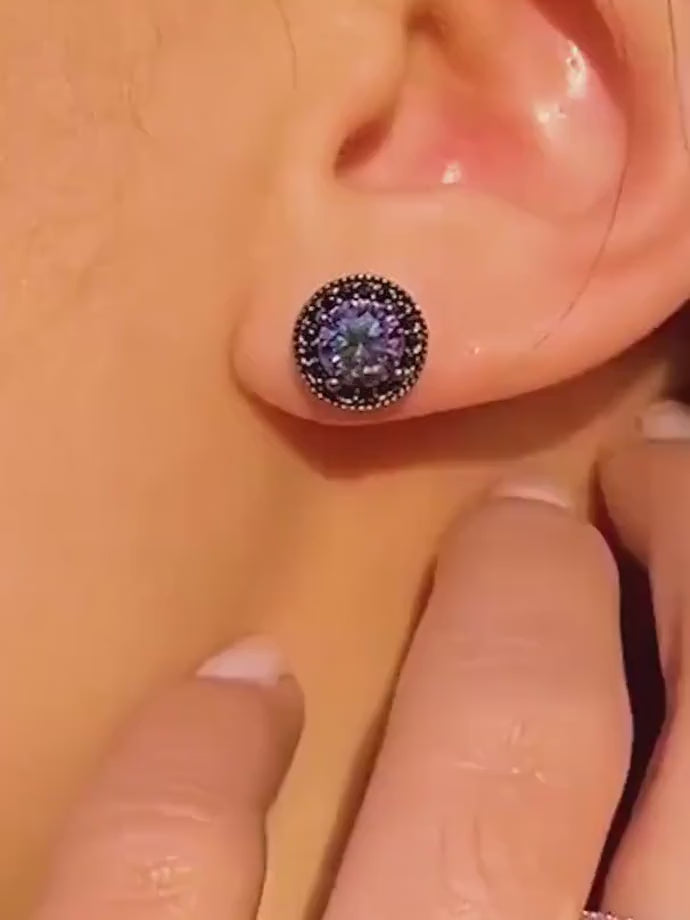Inspired by the allure of the starry nights, our Bang Bang earrings will have you gazing into our gorgeous mystic topaz crystals. A halo of black crystals surrounds the main illusion and creates a dark misty feel