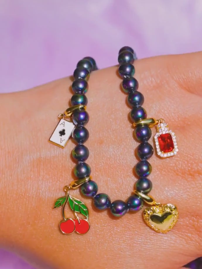 Save on the Ace High 4 charm set bundle available on your choice of white or black iridescent pearl crystal necklace.