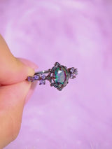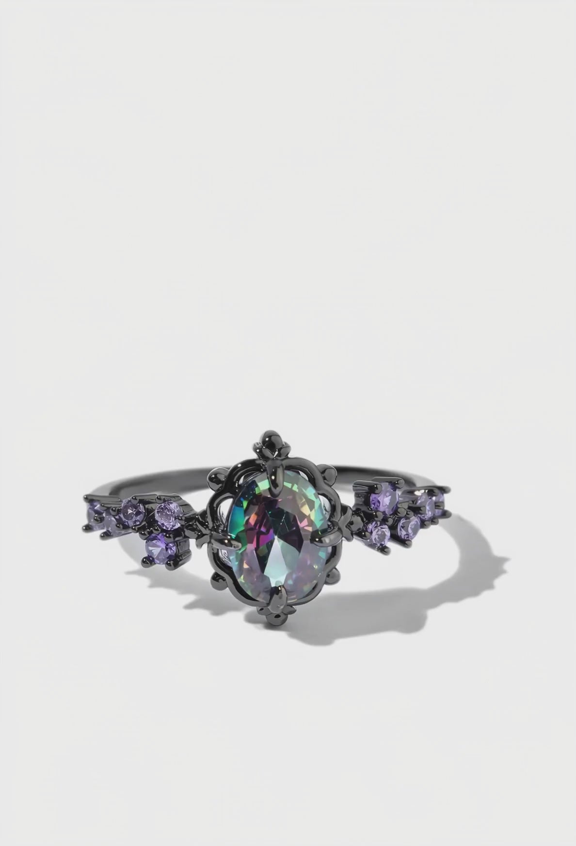- Design: Mystic topaz crystal with purple side crystals