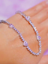 Pink Heart Tennis Necklace